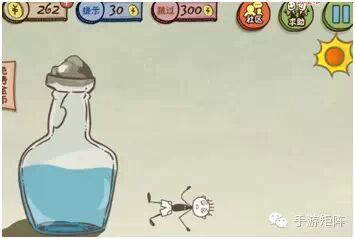 这一关类似乌鸦喝水,但矩叔发现如果把地上石头拿起弄到瓶子里会堵住瓶口,用天上乌鸦嘴里含着的时候会直接失败,矩叔开始发现这游戏果然不是一般的坑爹游戏。