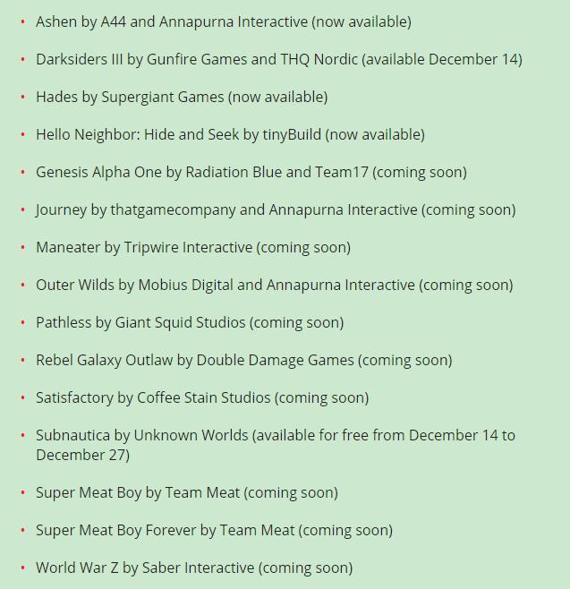 Epic游戏商店首批名单