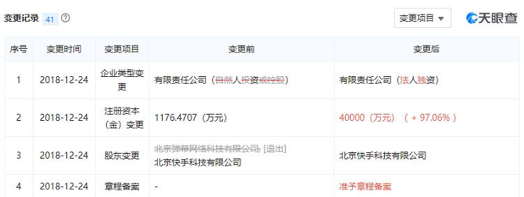 据天眼查更新信息显示,A站(AcFun.cn)于12月24日发生股东变更,运营主体“广州弹幕网络科技有限公司”股东,由原先的北京弹幕网络科技有限公司和北京快手科技有限公司,变为快手独资控股。