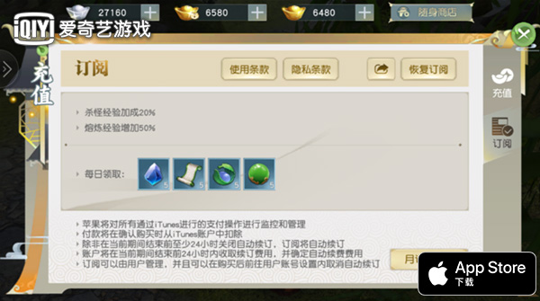 苹果特权——订阅功能,支持iTunes订阅功能,并且可以方便地进行自动续订,享受订阅BUFF加持。