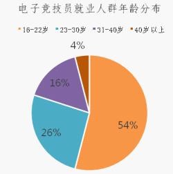 对调研数据进行整理,被调查的电子竞技员年龄分布有54%的电子竞技员年龄分布在16-22岁之间,有26%的电子竞技员年龄分布在23-30岁之间,只有16%的电子竞技员年龄分布在31-40之间,仅有4%的电子竞技员年龄在40岁以上。根据调研结果显示,电子竞技员就业人群年龄普遍偏低,在被调查者中有80%的从业人员年龄在30岁以下。
