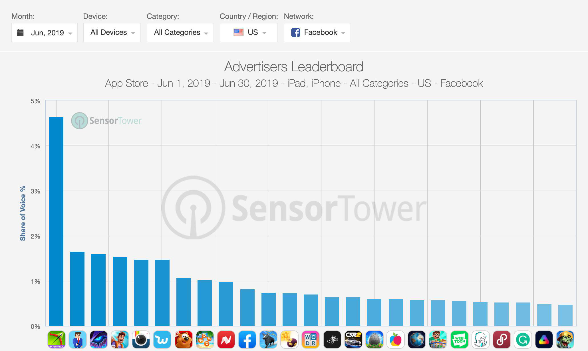 6月美国Facebook平台iOS广告主TOP25