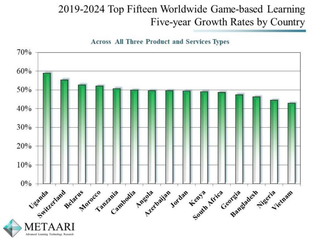 在去年的报告里,Metaari原本预计非洲市场的五年增长率最高达到60.1%,但目前该区域的增长率为41.3%,低于东欧市场的42.2%和西欧地区的47.2%。相比而言,亚太地区的教育游戏市场规模增长率为27%,主要因为中国市场的教育游戏增速放缓。