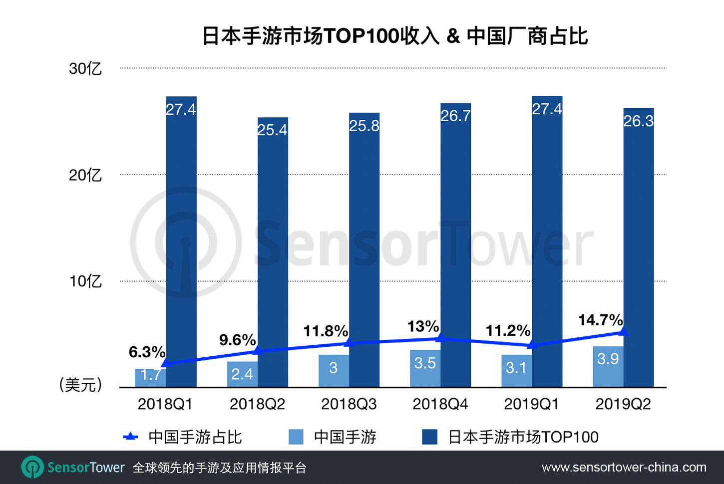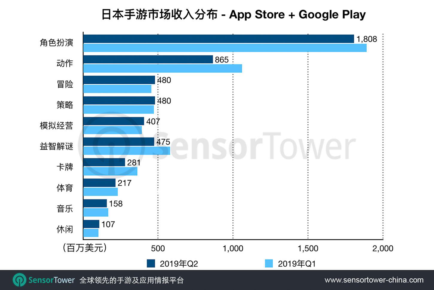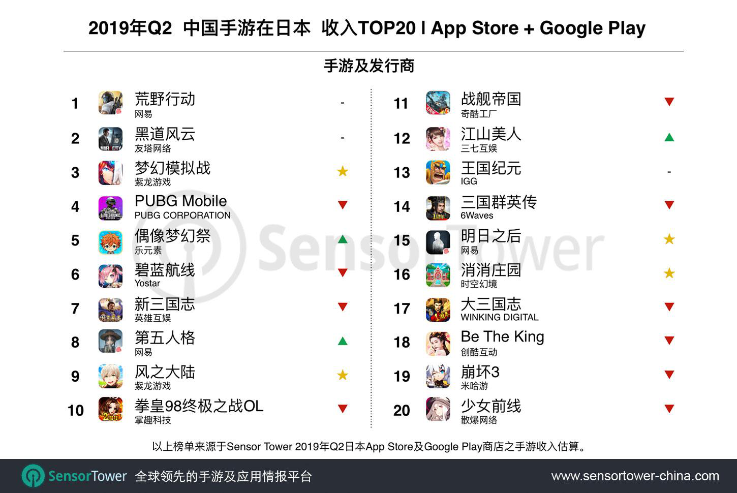 今天(8月28日),SensorTower发布了2019年Q2日本手游市场的大盘数据及国产游戏出海日本的相关数据。