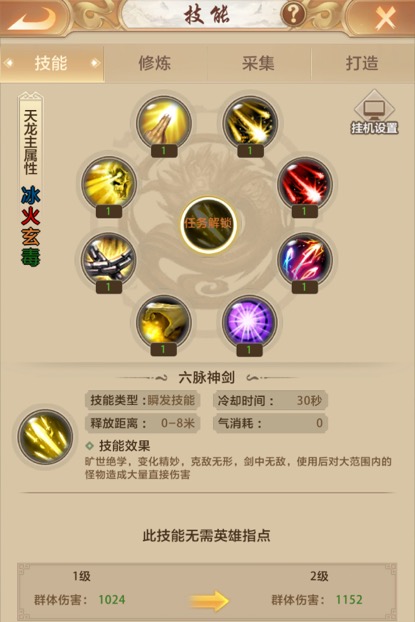 不同于其他门派的单属性,天龙是内外兼修且兼具冰火玄毒四属性的全攻门派。而且天龙的属性中既有内功防御和外功防御,通过装备与内丹的搭配,天龙玩家可利用最低的减抗打出最高的伤害,而且在属性上几乎没有弱点,难以被针对。