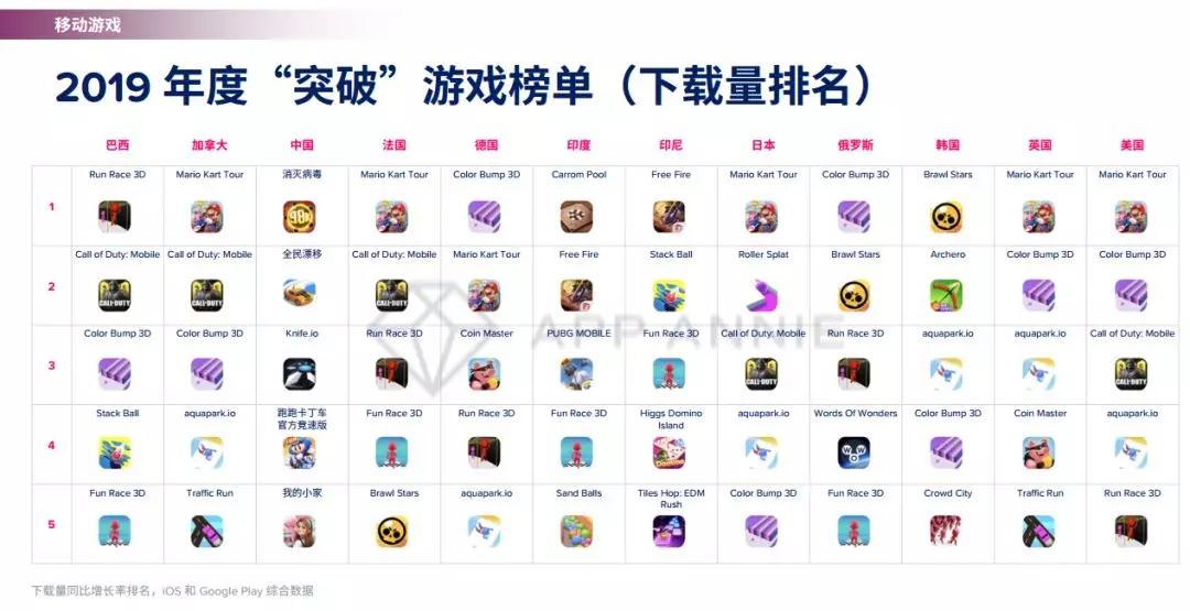 · 发行商Good Job Games这一年取得了巨大突破,多款休闲游戏在榜单中位列前茅。《Fun Race 3D》虽然在2019年5月份才发布,却依然高居全球下载量第5位。