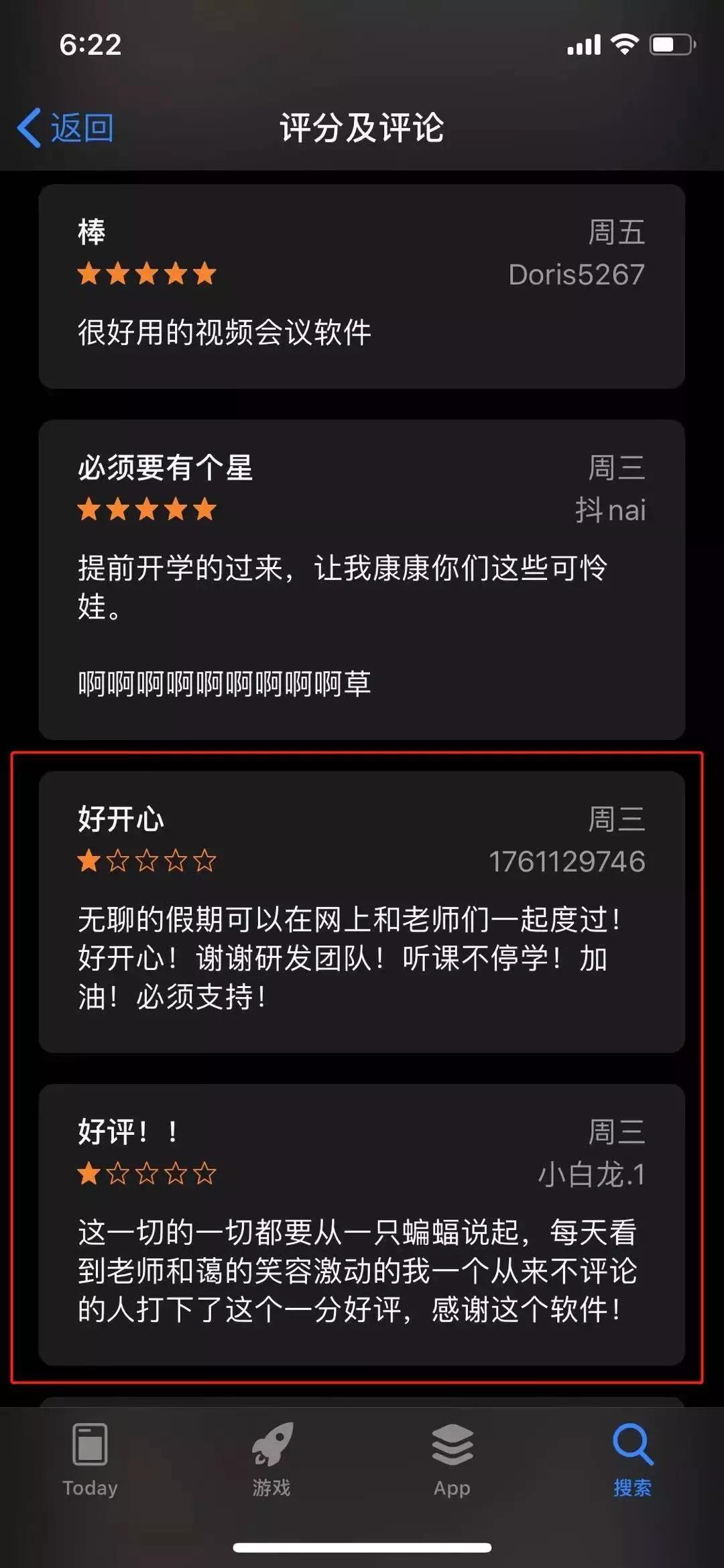 当然,也不是所有的”网课”App都会遭遇『一星』的命运,毕竟任何事都是具有双面性的,而另一群『五星』群众也在学校开启网课之后闻风而动。