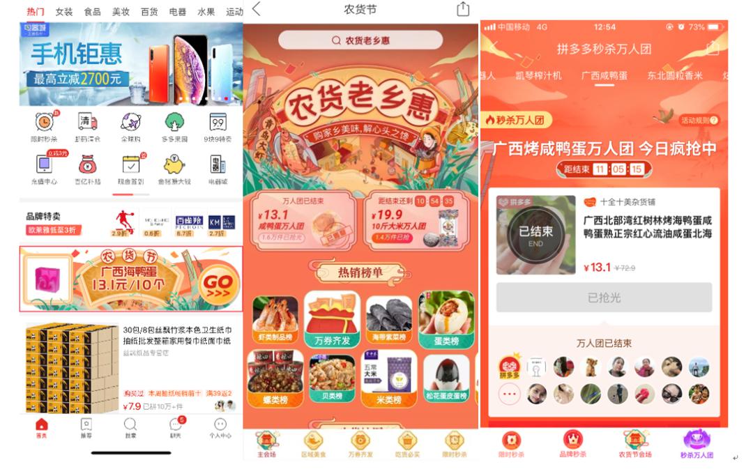 2019年,拼多多还上线了“农货节”,接入多多果园等入口推动农产品销售