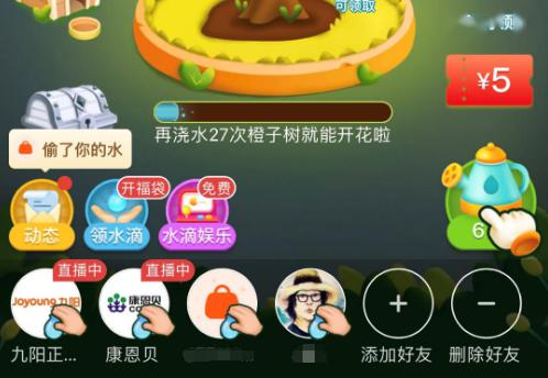 多多果园的玩法之一偷水浇树,除了偷好友的,还能去各品牌店家的直播间偷……