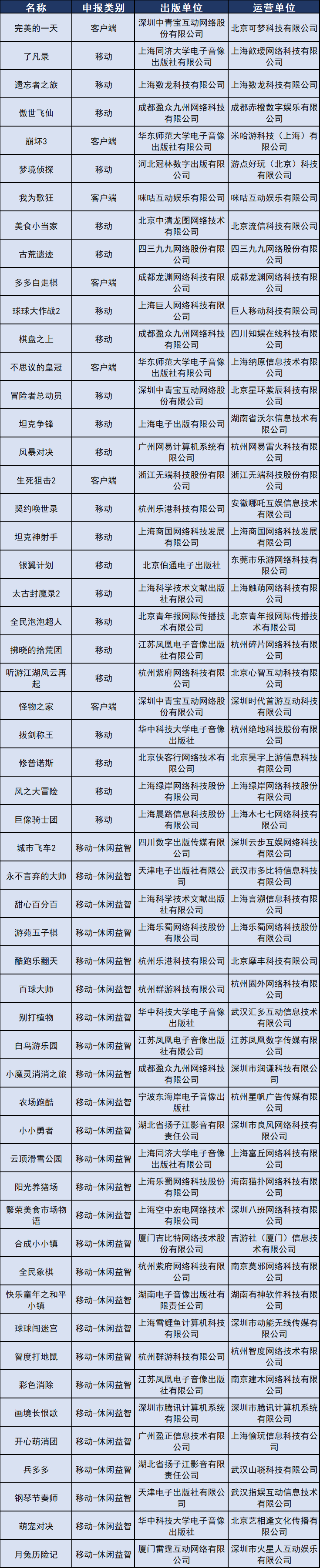 以下为具体过审名单: