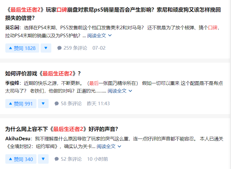 如果说《辐射4》只是一个S级IP没了系列前作的那个味儿,仍不失为一款好玩的游戏,那么《最后生还者2》和《冰汽时代》在国内的口碑则与欧美那边形成鲜明对立。就拿最近的《最后生还者2》来说,该游戏的口碑崩盘之剧烈,在国内游戏圈还引发了一连串口水仗与风波。