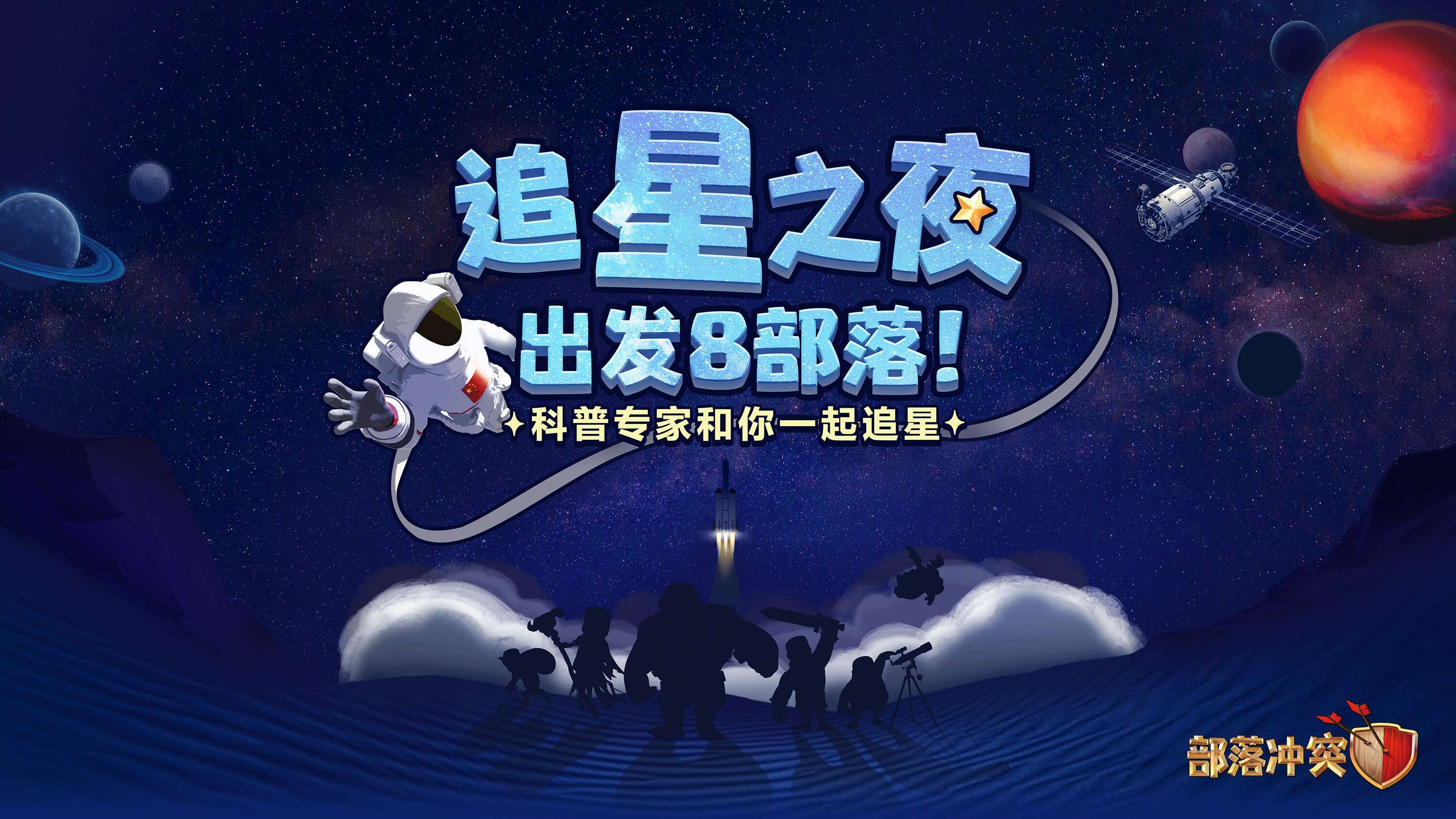 近日,中国首次火星探测任务——天问一号引起了世界级的关注,手游《部落冲突》的玩家首领们也纷纷表示要追“星”。为了助玩家圆梦,也为了迎接即将到来的八周年,《部落冲突》与中科院京区科协合作举办了“出发8部落!追星之旅”活动,邀请了许多忠实玩家一起追“星”,共同见证这一历史性时刻。就在昨天,天问一号探测器在中国文昌航天基地发射升空,成功进入预定轨道,将在七个月后到达火星附近,开展着陆、巡视等火星科学探测任务。