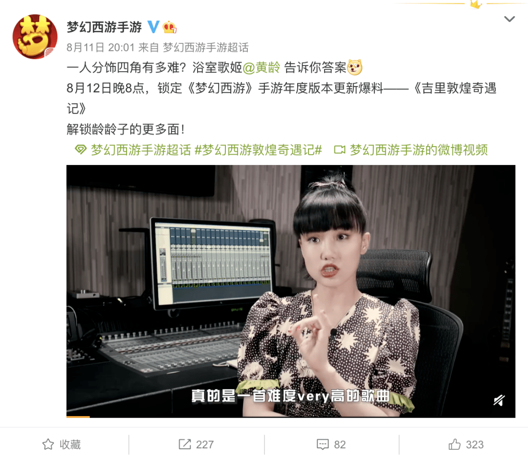 凭借手游的目标群体和艺人影响力的加持,本轮的官宣获得了良好的互动反馈。官方在接下来的传播上高举高打,发布了黄龄演唱梦幻版《达拉崩吧》的幕后花絮,持续为 812 直播爆料会引入影响力,进一步激发了玩家的好奇心和对新版本的期待热情。