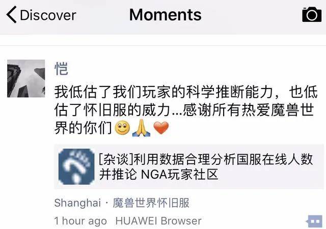 最初暴雪和网之易都认为,三到五万人在线就是一个过于乐观的预估了。然而服务器的数据呈现出一种醉酒后的梦幻感,玩家人数迅速突破十万,并且还有数倍于此的玩家正在排队。在NGA论坛上,有玩家通过对各种数据分析汇总,估算出魔兽怀旧服“开服三天后在线人数达百万”这个结果,然后官方人员对这个数字给予了认可。