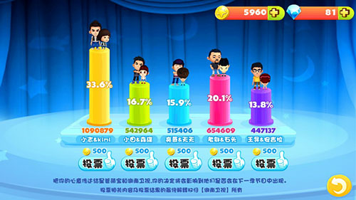 一看到投票,我突然就想起来芒果台近十年来的大招。曾经《超级女声》的短信投票让无数话费小贩乐开了花,而如今与时俱进,直接在游戏里面搞内购投票了!你说我错了?游戏币不花钱也能通过通关获取?你too young啊,林志颖爷俩那上百万的票数你玩到出第三季都追不上,偏偏我最大的愿望就是希望他们滚蛋!长这么帅,妹子拿我去一对比,我还怎么混?