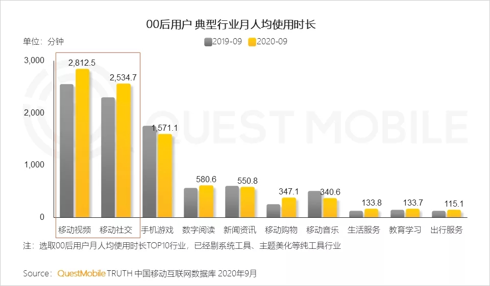 QuestMobile此前就指出,90后在移动网络上花的时间越来越多。就数据来看,一个合格的90后,每天至少会上7.5小时的网、每月至少要上7天的网。其中,泛娱乐领域、尤其是长短视频成为了吸引年轻人的主要增长动力源。