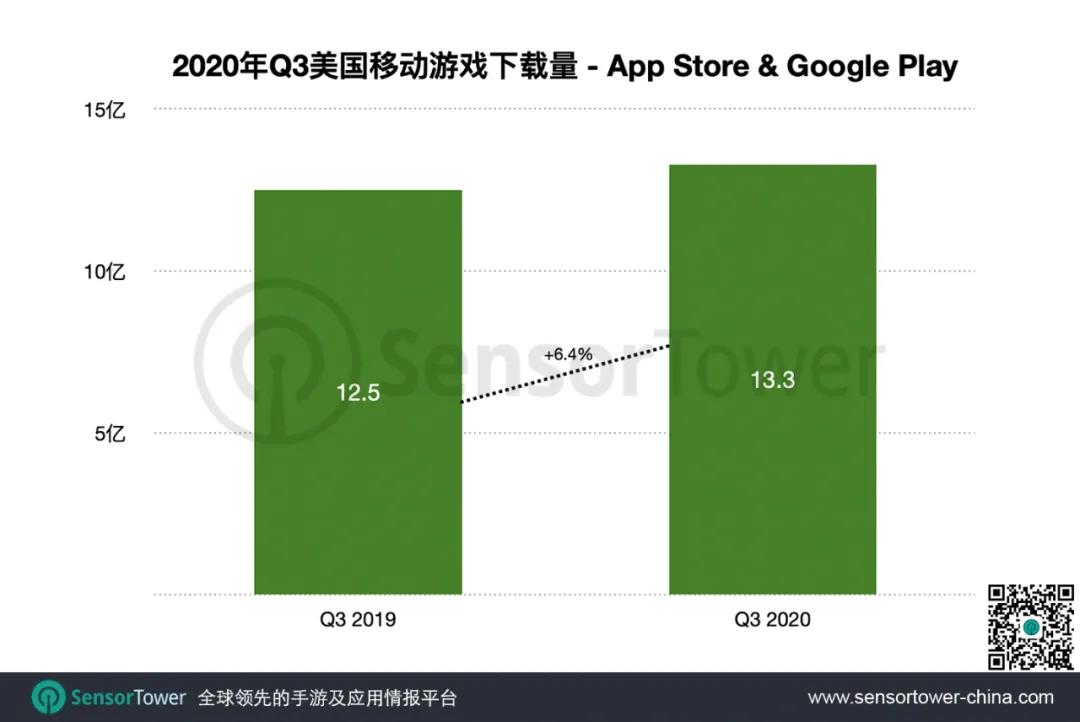 Q3美国App Store和Google Play手游总下载量为13.3亿次,较Q2下滑7.6%,较去年同期增长6.4%。其中,App Store手游下载量占52.6%,Google Play占47.4%。