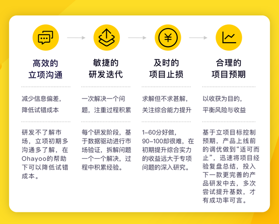 同时,我们也建议大家“及时止损”,尤其是在经过市场数据验证的情况时在数据层面上发现与立项预期有较大偏差时,不建议大家“死磕”到底,毕竟,成功率的前提,是有足够多可能成功的机会。