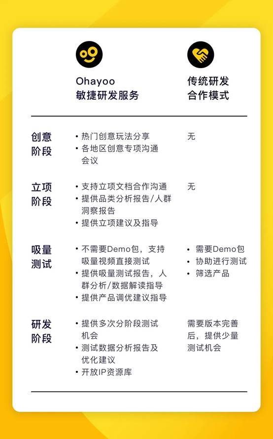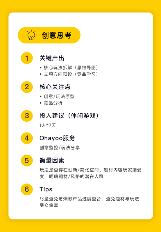 另外一方面,站在开发者的角度来说,过往与发行方的合作往往是“简单粗暴”的看产品数据,所以大部分开发者在产品未完善之前,对外的合作沟通会十分谨慎,但Ohayoo希望改变这一现状,我们诚恳的希望开发者能够善用Ohayoo提供的服务与资源,能够在立项初期尽早与我们进行合作沟通,越早沟通,获得的服务与支持就会越多,试错成本也会更低,而这样的沟通与交流,也能够进一步加深双方的了解,磨合团队间的合作效率,积累长期信任。