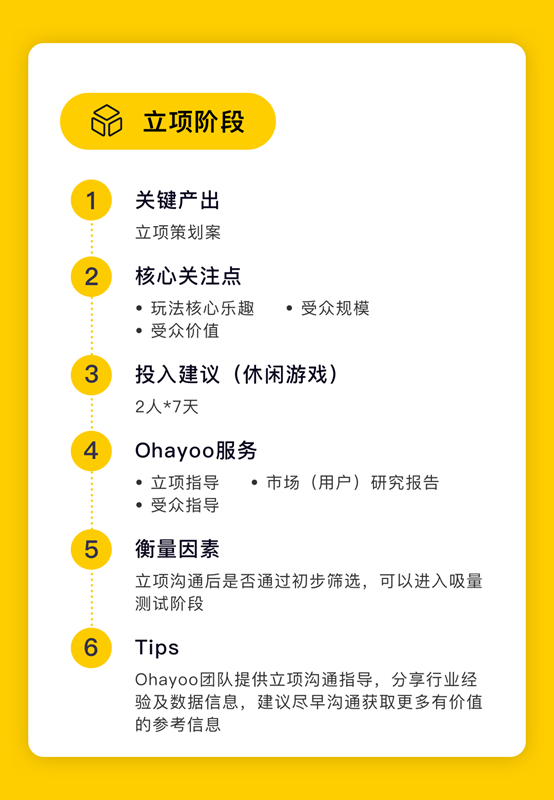 当然,Ohayoo在其中也会在服务的过程中,为开发者提供丰富的行业经验分享,接下来就为大家分享一些在各个研发阶段关键节点上,开发者常见的问题或是研发经验: