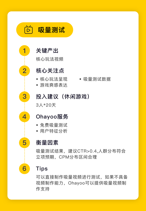 2. 吸量测试的CTR高低代表游戏吸量度,不需要刻意通过修改视频展现形式提高吸量度,要相信用户的选择,不能掩耳盗铃;