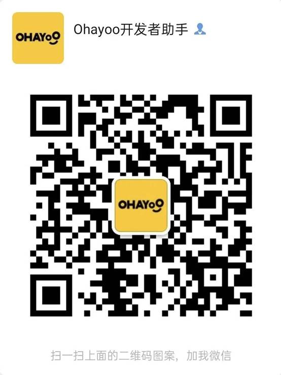 *如果想申请加入Ohayoo行业群,或想了解更多休闲游戏市场洞察,Ohayoo最新商务政策、发行动态分享,欢迎扫描下方二维码,和Ohayoo开发者助手进一步沟通(烦请注明:姓名-团队名称-城市-Ohayoo游戏)。
