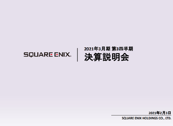 Square Enix于昨日(2月3日)官方公开了20-21财年Q3财报,统计截止日期到2020年12月31日。