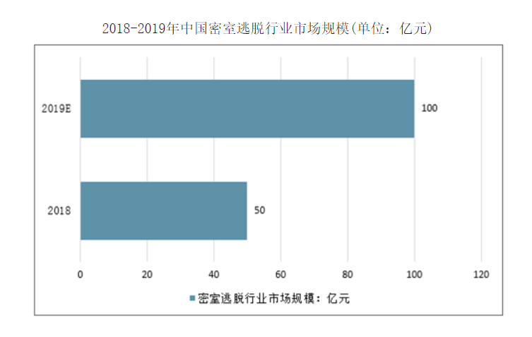 2018年到2019年,是密室逃脱和剧本杀的双双井喷期,密室逃脱行业市场市值从50亿直接翻了一番,同时剧本杀线下实体店的数量从2019年1月到12月期间由2400家左右暴增至12000家,市场市值也达到了约40亿。