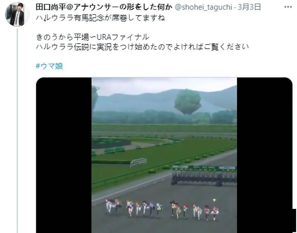 听了游戏的赛马比赛解说,东京电视台体育播音员田口尚平都忍不住在游戏内的赛场做起“本职工作”。