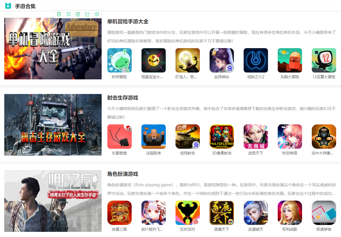 4.手游专辑:收录五花八门精品手游,根据玩法将其整合归一,让手机用户体验一站式手游下载服务。