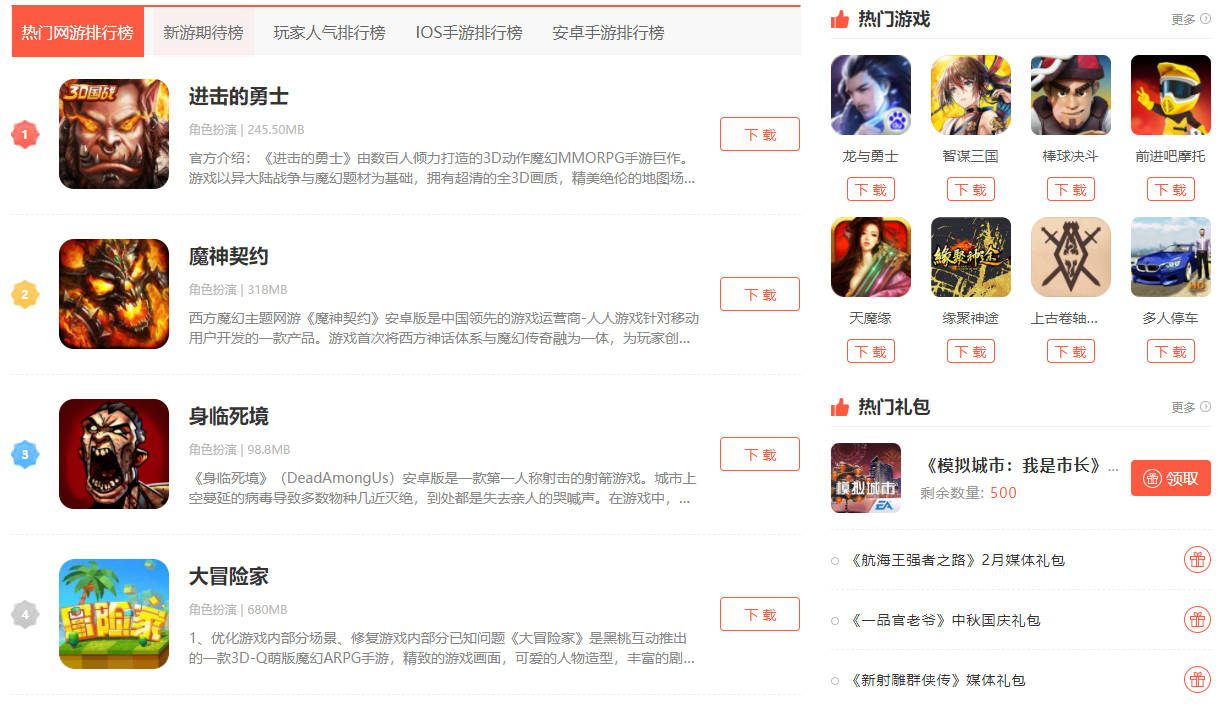网站的首页是以板块分区形式而呈现的,每个分区将站内内容囊括其中,可以让玩家以最快的速度找寻所需的游戏、软件、媒体资讯、游戏攻略、游戏礼包等内容。