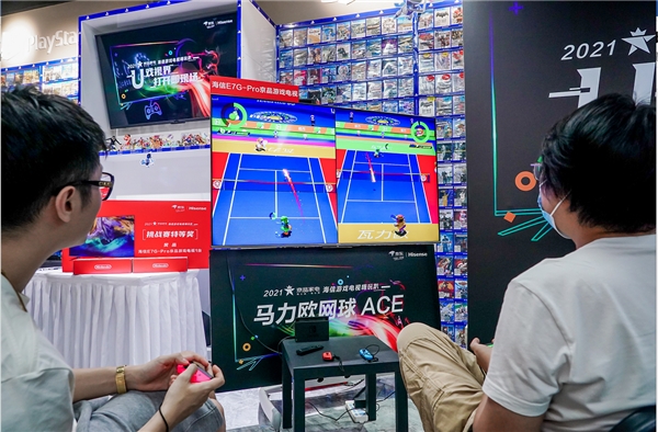 7月12日,北京银河SOHO自由人电玩上演了一场乐趣十足的游戏大趴体,活动现场不仅有《超级马力欧派对》和《马力欧网球 ACE》这样的经典IP上演回忆杀,还有《舞力全开 Just Dance》为全场注入动感活力。这是京东家电联合海信,集结超甜美女主播林梦鸽、全能电竞达人沈荣杰、专业舞蹈游戏达人junko,带来的“U戏视界,打开即现场——2021京品家电海信游戏电视嗨玩趴”。这场嗨玩趴通过三款经典任天堂Switch游戏机游戏挑战赛,不仅让参与者玩得尽兴,也能感受一代游戏神器海信E7G-Pro京品游戏电视带来的超爽体验。