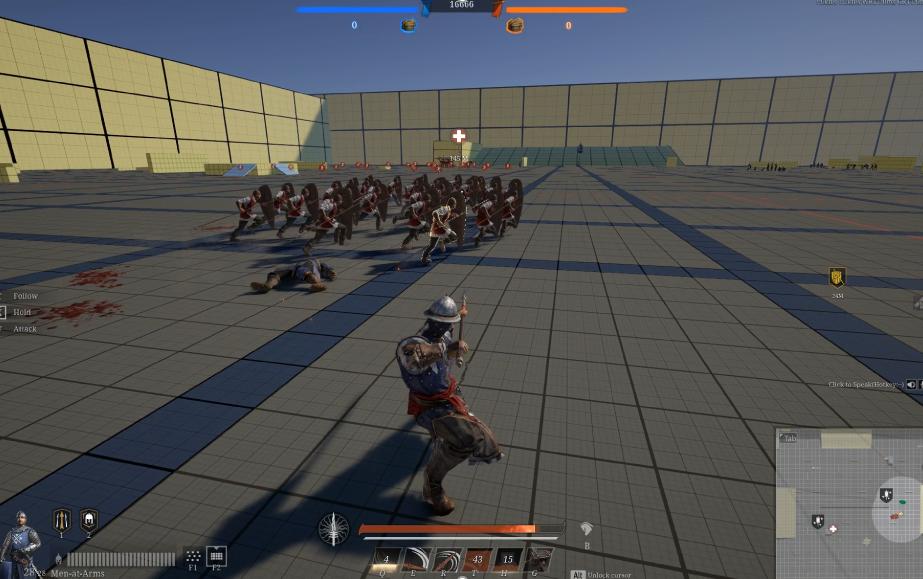 战斗中会有一千多名士兵参与战斗,你在其中作为一名骁勇善战的将领,可以选择不同的兵团通过射击、防御、近战等战术击穿敌人的防御。你可以命令英国长弓手远距离射击敌人,带领一堆波兰翼骑兵从高地冲溃敌军,或者使用强大的攻城器械摧毁敌人的防御工事。在这个史诗级战场上,两支各15名玩家的队伍互相厮杀直至胜利。