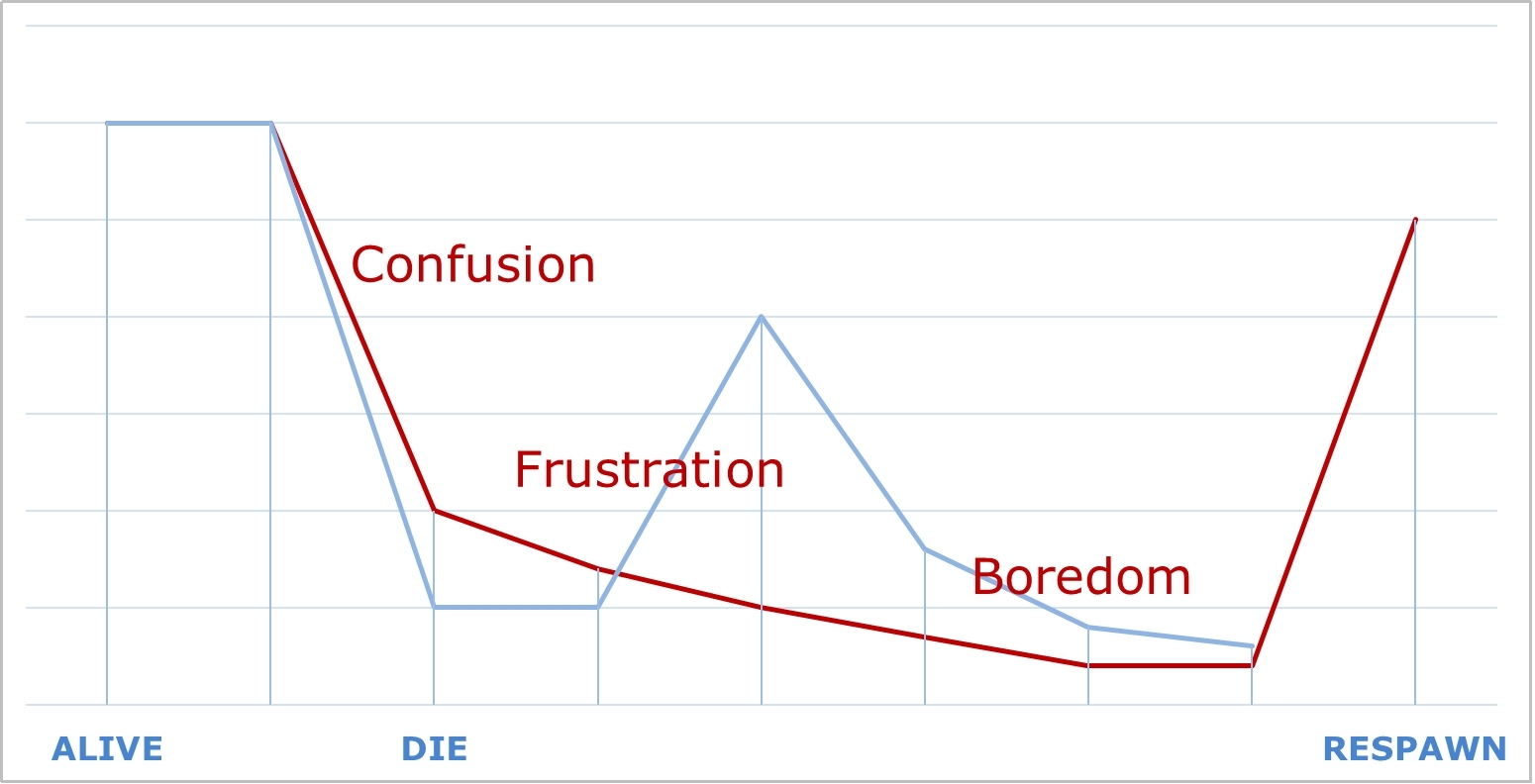 之后,我们应该分析死亡所带来的消极体验,并提供设计解决方案来缓解这些消极体验,如困惑,沮丧,无聊。