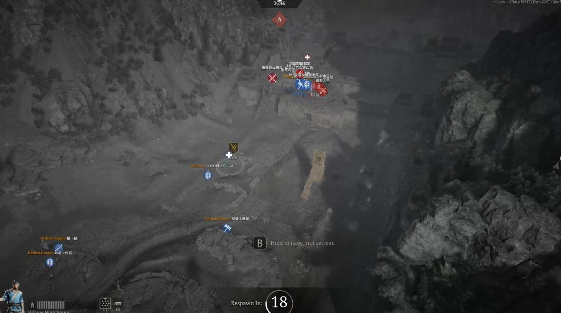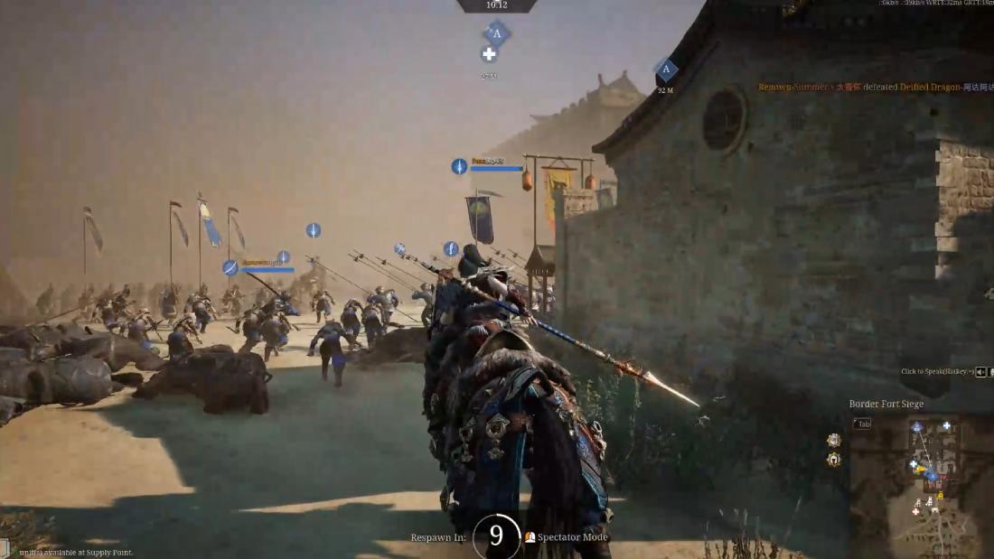 另外我们还有鹰眼模式,可以让你从更高的角度思考。玩家也可以在死后考虑策略。因为随着游戏的发展,后援兵团越来越少,兵团之间存在克制关系,带合适的兵团比无脑战斗更重要。与此同时,弩或大炮等攻城武器如果使用得当也能扭转战局。决定你将在哪里重生以及你出生后的道路也是至关重要的。较长的重生时间也让杀死地方武将的玩家能够巩固自己的胜利或扭转局势对抗敌人。