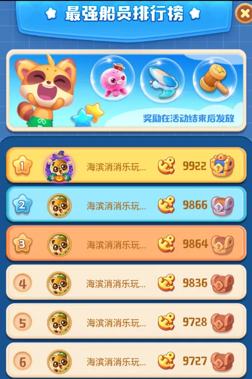 除此之外,活动期间,还会根据闯关数量进行组内和全服排名,每天0点时组内排名第1的玩家会成为当日的船长,获得专属奖励!并且活动周期内全服排名前列的玩家将获得豪华道具和风车币奖励,第1名的玩家还可获得海滨限量小章鱼玩偶!