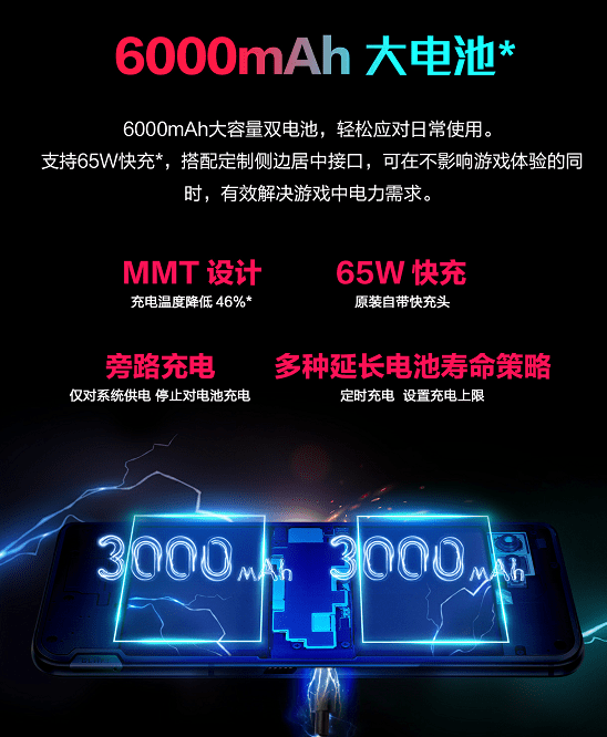 - 6000mAh快充电池、侧边中置的定制接口、前置双正向立体声扬声器