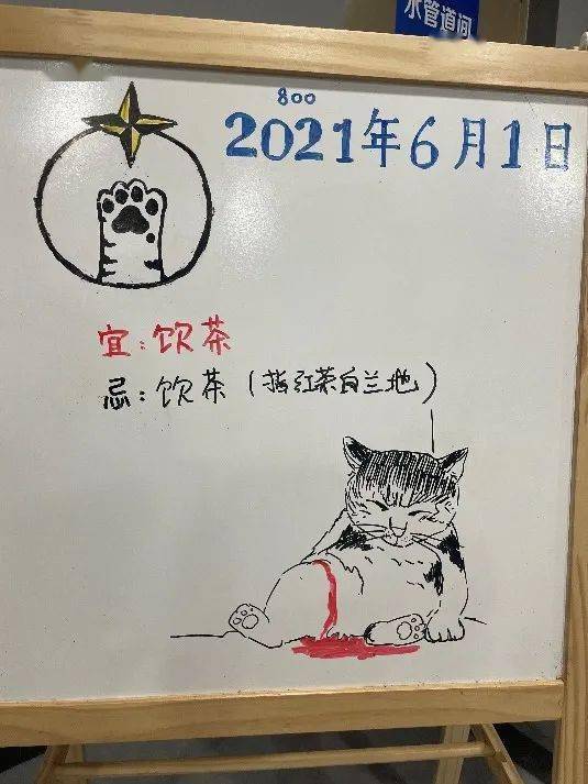 公司里用来通知杂务的白板,有时候出纳也会在上面画一只猫