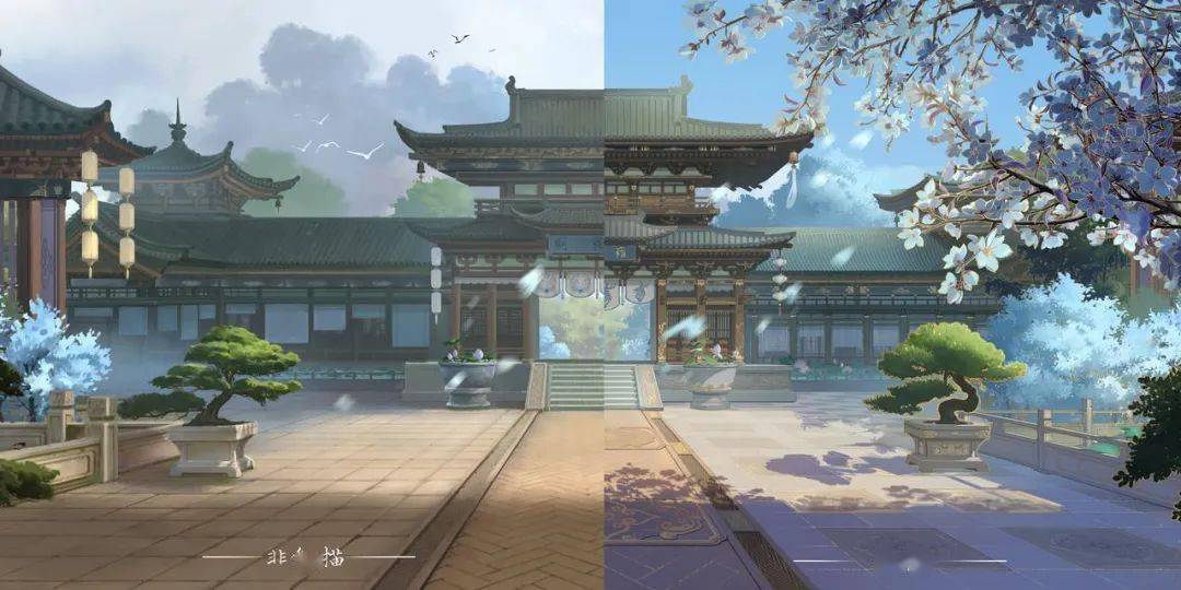 在明雍书院的场景图中,《花亦山心之月》也融入了描金技艺,用铁线描的画技法,从描形、描精再到描境。一方面突出了游戏场景的极致细节与层次感,另一方面也令“皇家书院”低调又极致华贵的气质一展无遗。