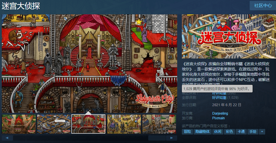 这款神级插画、风趣画风、精致细节的游戏更是在口碑上获得了玩家的一致好评,在Steam上超过1000篇评测中获得了96%的好评,而在过去30天的100篇评测中获得了99%的好评。即便是在有着近10万人关注的TapTap上,这款游戏也达到了9.8的高分,其丰富的细节被玩家称为”欧洲版的清明上河图“,可以说是神级画风了。