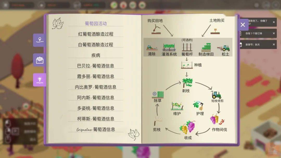 该作是真实还原模拟经营葡萄酒庄园的游戏,在游戏中,玩家会学习到葡萄酒酿造的全过程,从选择葡萄和葡萄藤品种,到给葡萄剪枝,再到压皮、发酵、在橡木桶熟成、过滤,最后到装瓶、贴标签并拿到市场上售卖。之所以能够做到如此真实,很大程度上是来自于《酿造物语》制作人Yves的亲身经历,Yves儿时就曾在意大利的阿尔巴与家人参与葡萄酒的制作。光看这个独特的题材和玩法,是不是就有点微醺了?