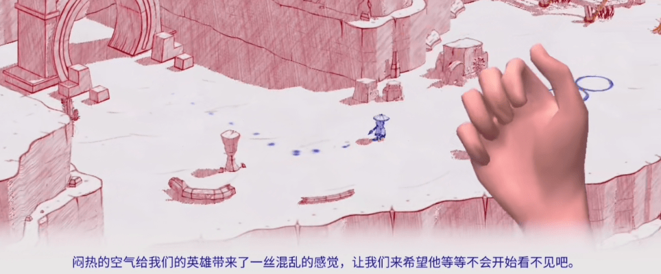 Inked讲述的是一个发生在“画家”创造的纸墨世界中,玩家将扮演一位无名英雄,在这片广袤无垠的纸墨大地上中跨过重重关卡,寻回自己失去的爱人的故事。乍一看是这个故事略显俗套,或许在最终的结局上它有着非常传统的表现,但是在游戏的过程中,可能就不是那么容易让玩家猜到了。这是一个双线并行的叙事游戏,在游戏的过程中你会发现你操作的无名英雄对抗的却是这个画出“自己”的“画家”,说起来可能略微有些绕,不过如果你能够亲自体验一番,你就能够明白这个游戏所讲述的故事到底是一个怎么样的“俗套中带有一丝清新”的味道了。
