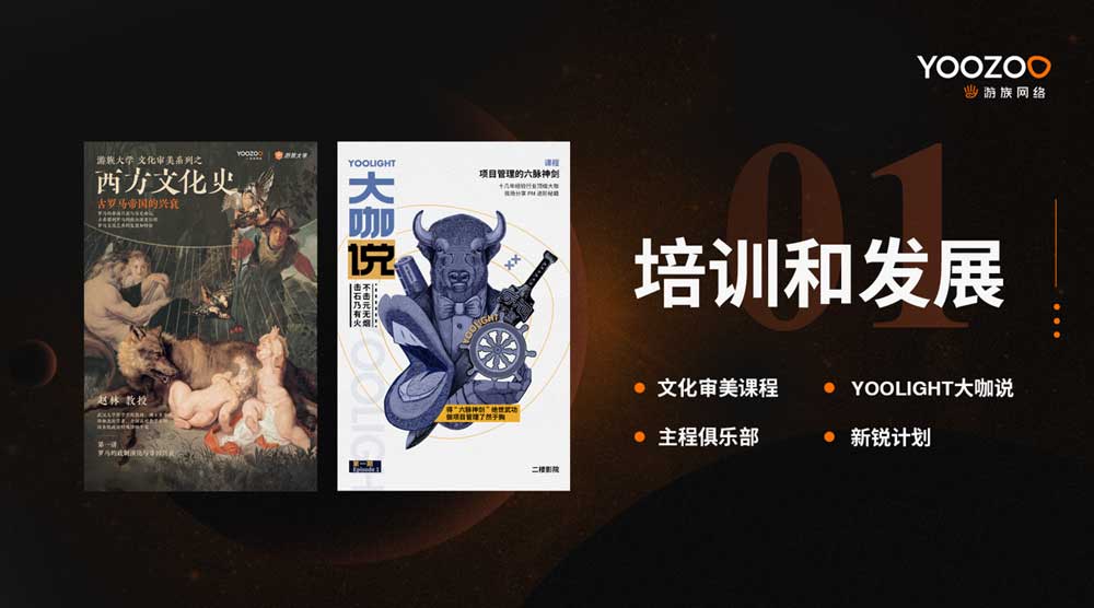 陈芳进一步介绍道,在培训和发展方面,游族会打造各专业条线的学习组织,比如每周都有活动的“主程俱乐部”,一年一度的1024节;在策划、技术、美术等专业方向上定制了高频次的培训课程。游族成立了创新院,并明确每年将投入不低于10%的毛利用于创新研发与投资,以求能够最大程度释放了族人们的价值创造力。同时秉持用全球化的思维和资源去做产品的研发和发行的理念,让受限于区域的发行人才拥有更大的全球市场舞台。