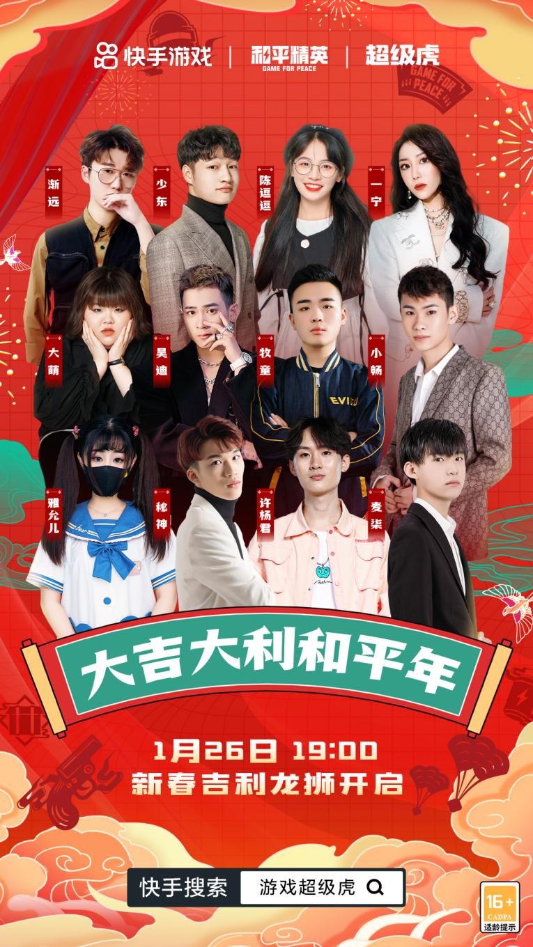 游戏超级虎是快手游戏在虎年新春即将来临之际,联合王者荣耀、和平精英,英雄联盟手游等热门游戏携手顶级游戏主播共同打造的迎新春大型直播主题活动。每一个专场都十分的精彩,在1月26日这天,也是终于迎来了《和平精英》专场。