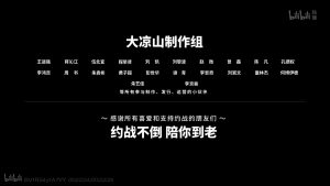 第一话结尾,士道意外扑倒二亚后,在二亚的一句“其实我……只喜欢过二次元的角色”中,屏幕瞬间被“俺也一样”的弹幕大军淹没。但这并不是结束,在片尾的制作组名单中,粉丝们不出意外地看到了Special Thanks下大凉山的logo,而紧接着,满满两页,共计400个约战手游饲养员ID的特别鸣谢名单,成功让正准备完结撒花的粉丝们破了大防。