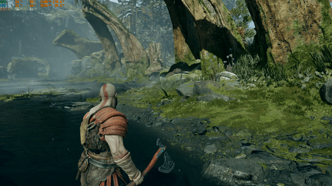 ▲《战神4》4K分辨率高画质,枪神6 Plus超竞版的平均帧速帧速65fps,在4K下高画质还是没问题的。另外在最高画质+DLSS画质设定下,平均帧速为71fps。