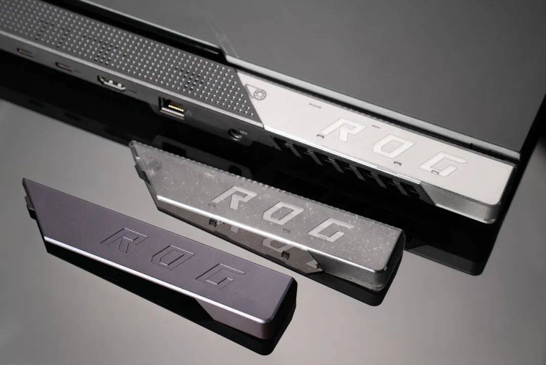 而在机身转轴处,ROG给枪神6 Plus超竞版设计了一个可拆换的信仰徽章,机身自带一个,随机附赠两个,一共三个可替换,其中一个还是透明款。随玩家个人喜好而DIY机身小部件,也是一件有趣的事。