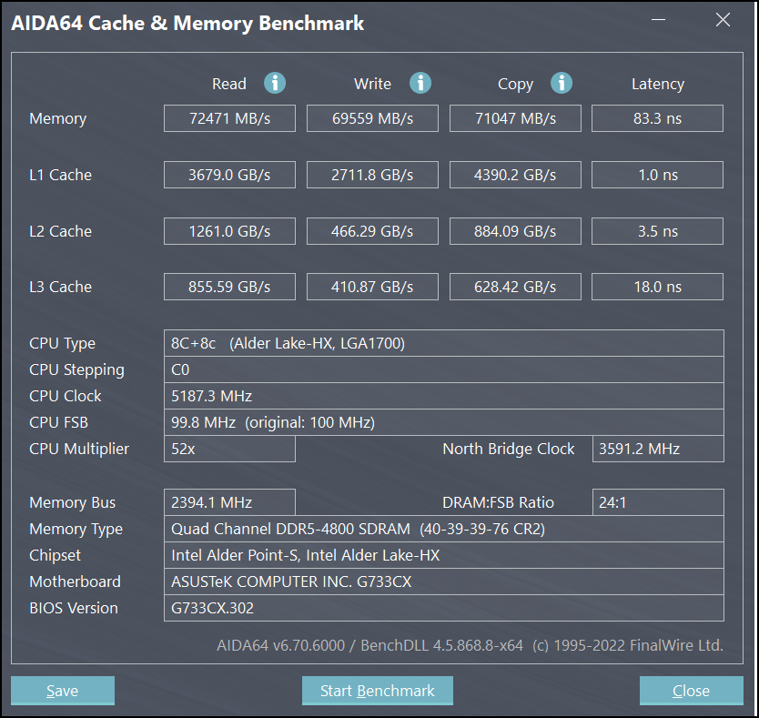 牛叔测评款枪神6 Plus超竞版,搭载的是英特尔移动平台第12代最高规格款酷睿i9 12950HX处理器,它的核心/线程数堪比桌面级酷睿i9处理器,具备16核(8+8)24线程,基础功耗为55W,不锁频设计,三级缓存为30MB,最高加速频率5GHz。而ROG对枪神6 Plus超竞版的处理器进行了出厂预超频设计,因此实际上最高频率能跑到5.2GHz。