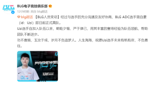 BLG宣布《英雄联盟》选手Uzi离队,加盟仅168天