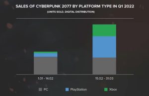 最近,CDPR公司CEO Adam Kicinski表示,《赛博朋克2077》在2022年第一季度的销量至少增长了6倍,截至2022年4月已经售出1800万份。从公布的图表来看,游戏销量的提升很可能得益于2月份推出的次世代版本更新。随着《赛博朋克2077》即将发布大型DLC,游戏的销量想必还会继续上升。